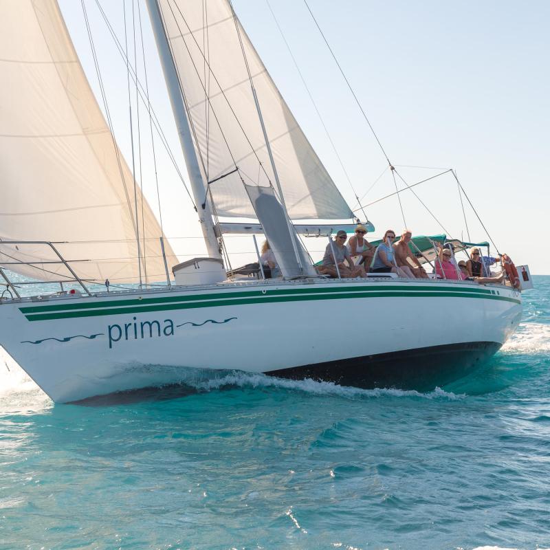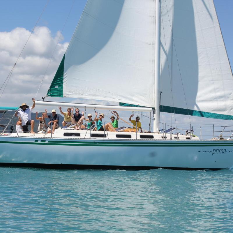 Prima provides small-group sailing adventures around the Whitsundays. Prima was built for charters in the Whitsundays and is comfortable, lovingly presented with plenty of seating. There are a large saloon and dining area that can seat all 12 guests at once.