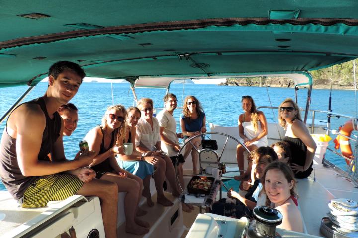The deck has a shaded canopy over the helm with lots of seating, plus a cushioned area for sunbathing. Bring your own drinks and store them in the guest fridge for easy access. No two trips are the same as we take you from one carefully selected, idyllic island location to the next.